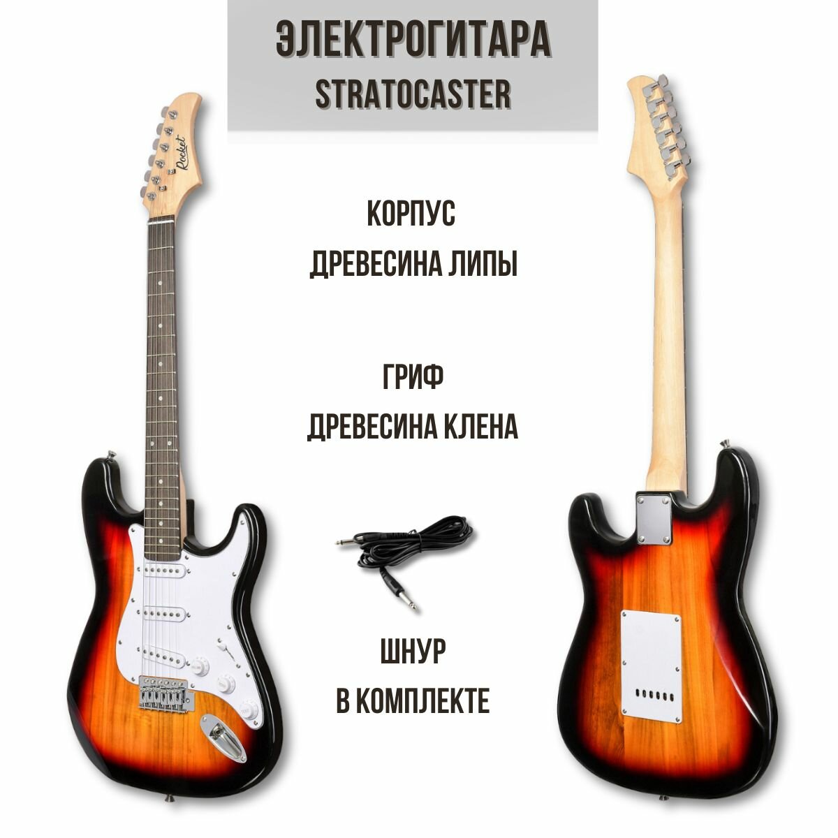 Купить Электрогитара ROCKET ST-01 SB Stratocaster SSS цвет санберст в комплекте шнур Jack-Jack