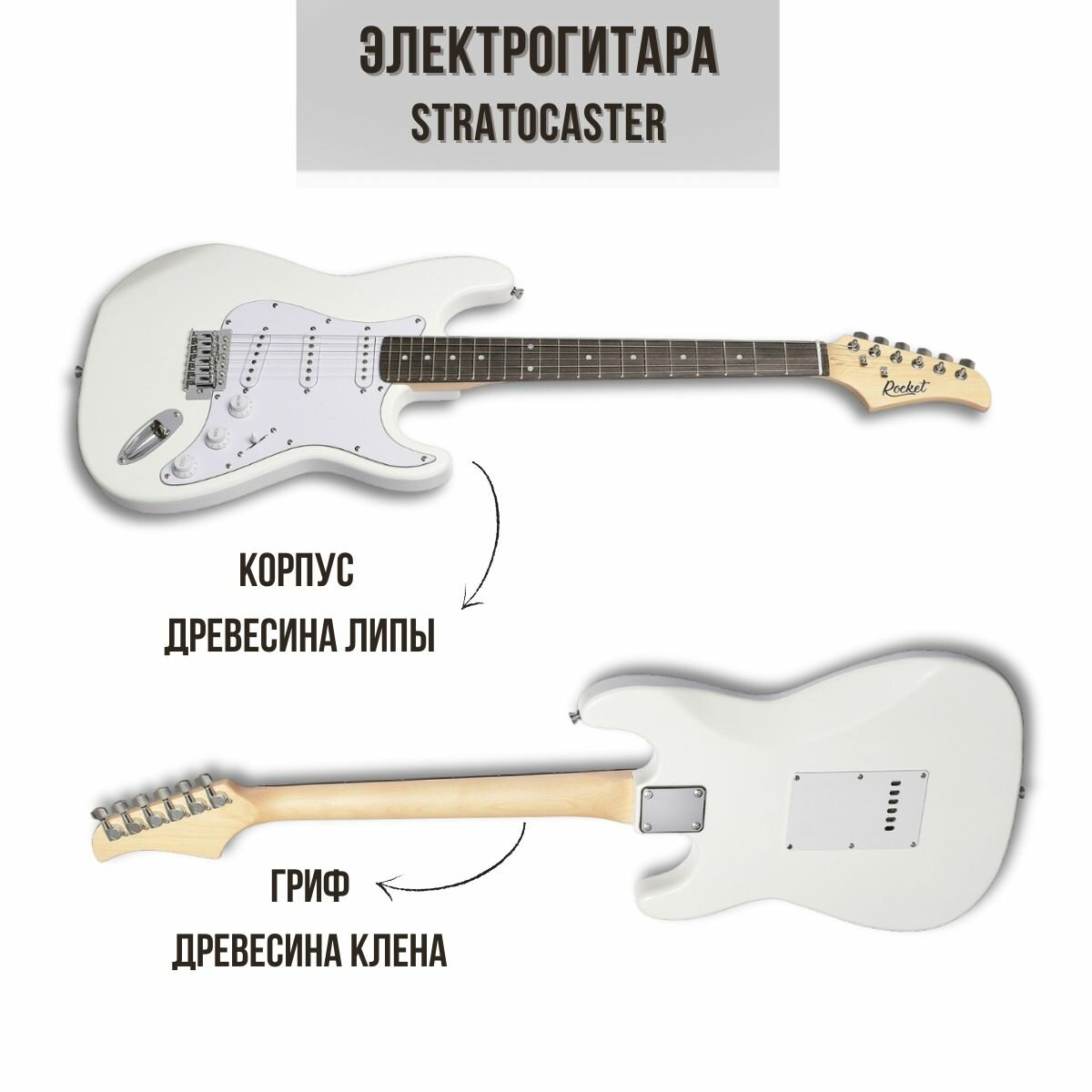 Электрогитара ROCKET ST-01 WH Stratocaster SSS цвет белый в комплекте шнур Jack-Jack