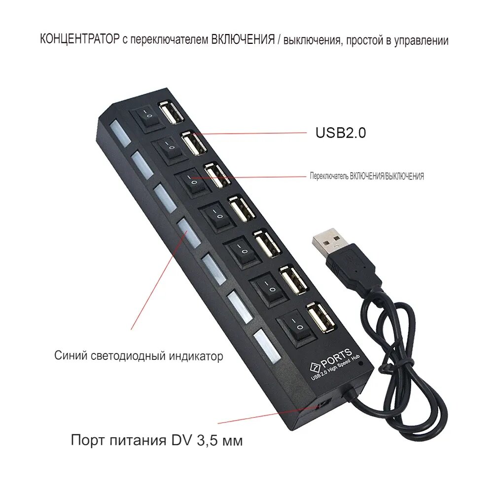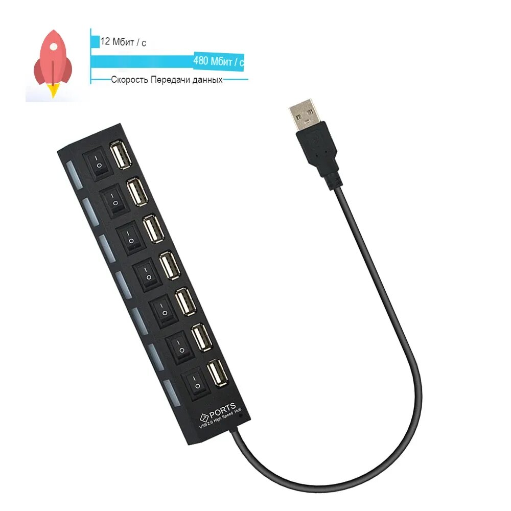 Купить USB Hub на 7 портов с выключателями для периферийных устройств