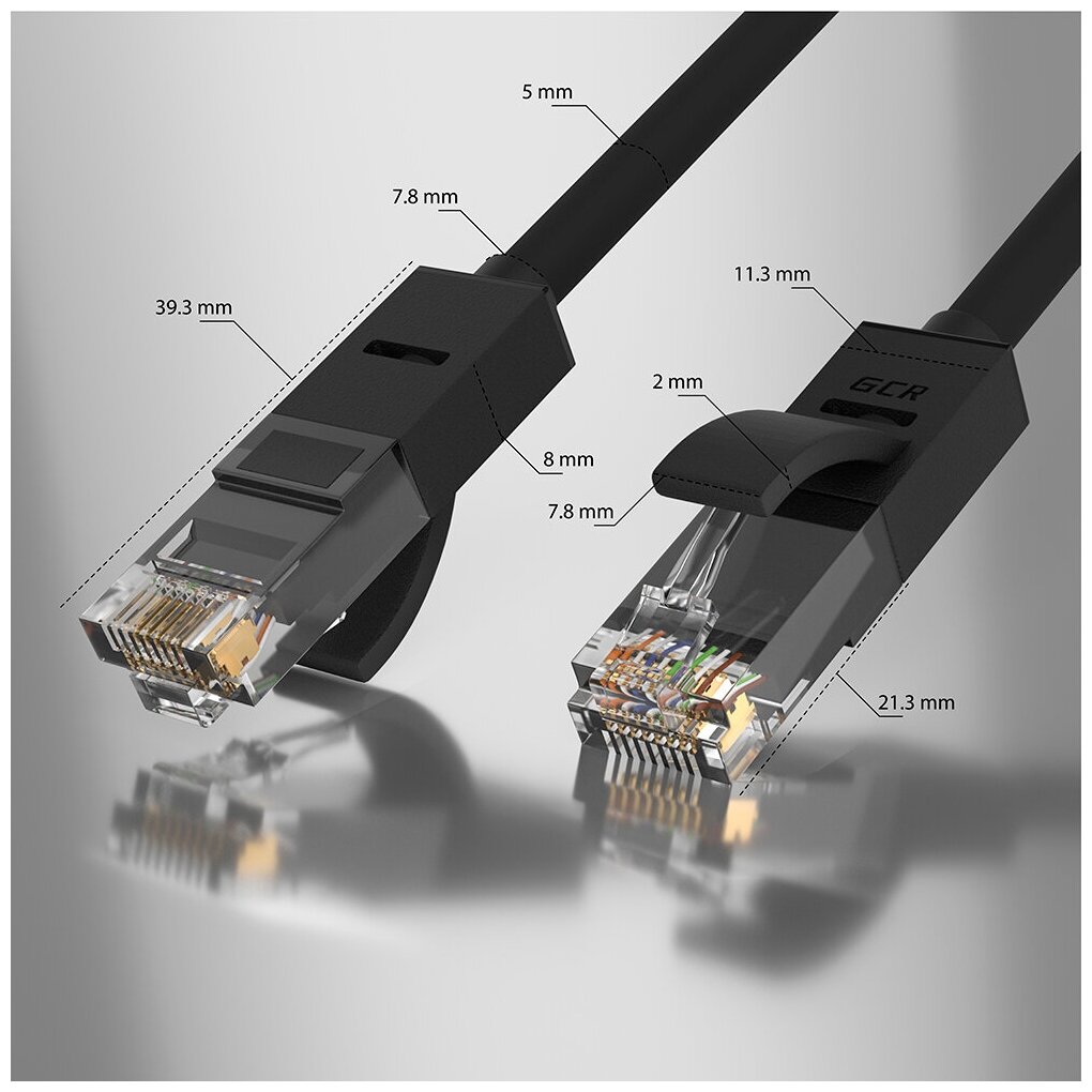 LAN кабель GCR для подключения интернета cat5e RJ45 1Гбит/c 1.5м патч корд черный