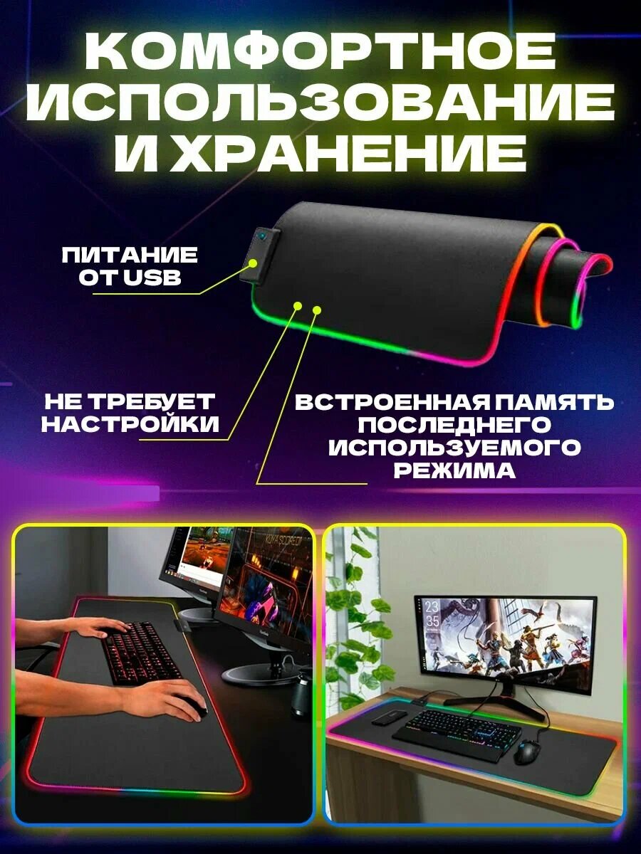 Игровой коврик Defender с подсветкой, 90х35 см RGB Premium качество