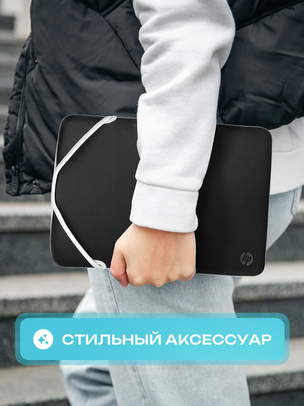 Купить Чехол для ноутбука 15.6" дюймов HP Bik-Sil Chroma Sleeve из неопрена, двусторонний, черный/белый