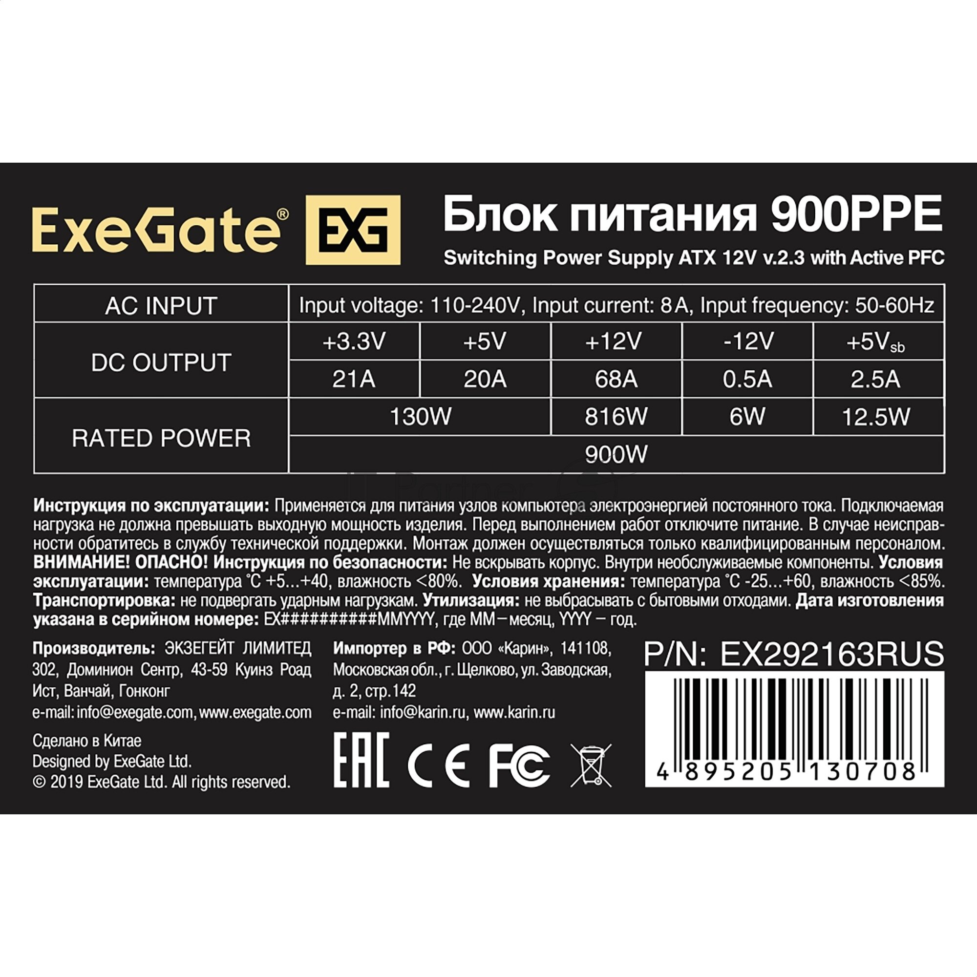 Блок питания 900W ExeGate 900PPE (EX292163RUS-S) интересное: