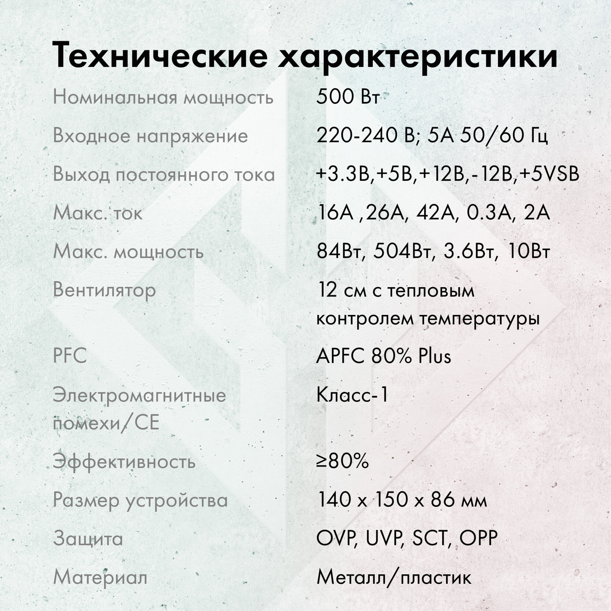 | Стандарт эффективности | 80 PLUS |