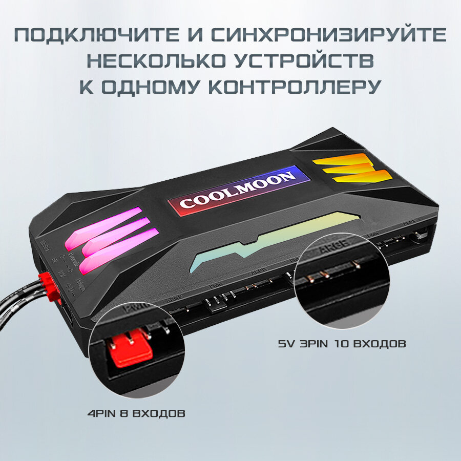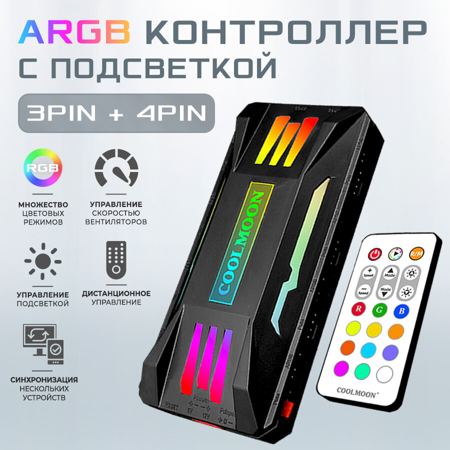 Контроллер для подсветки компьютера, COOLMOON, PWM+ARGB черный, 4pin + 3pin с пультом ДУ и проводом SATA интересное: