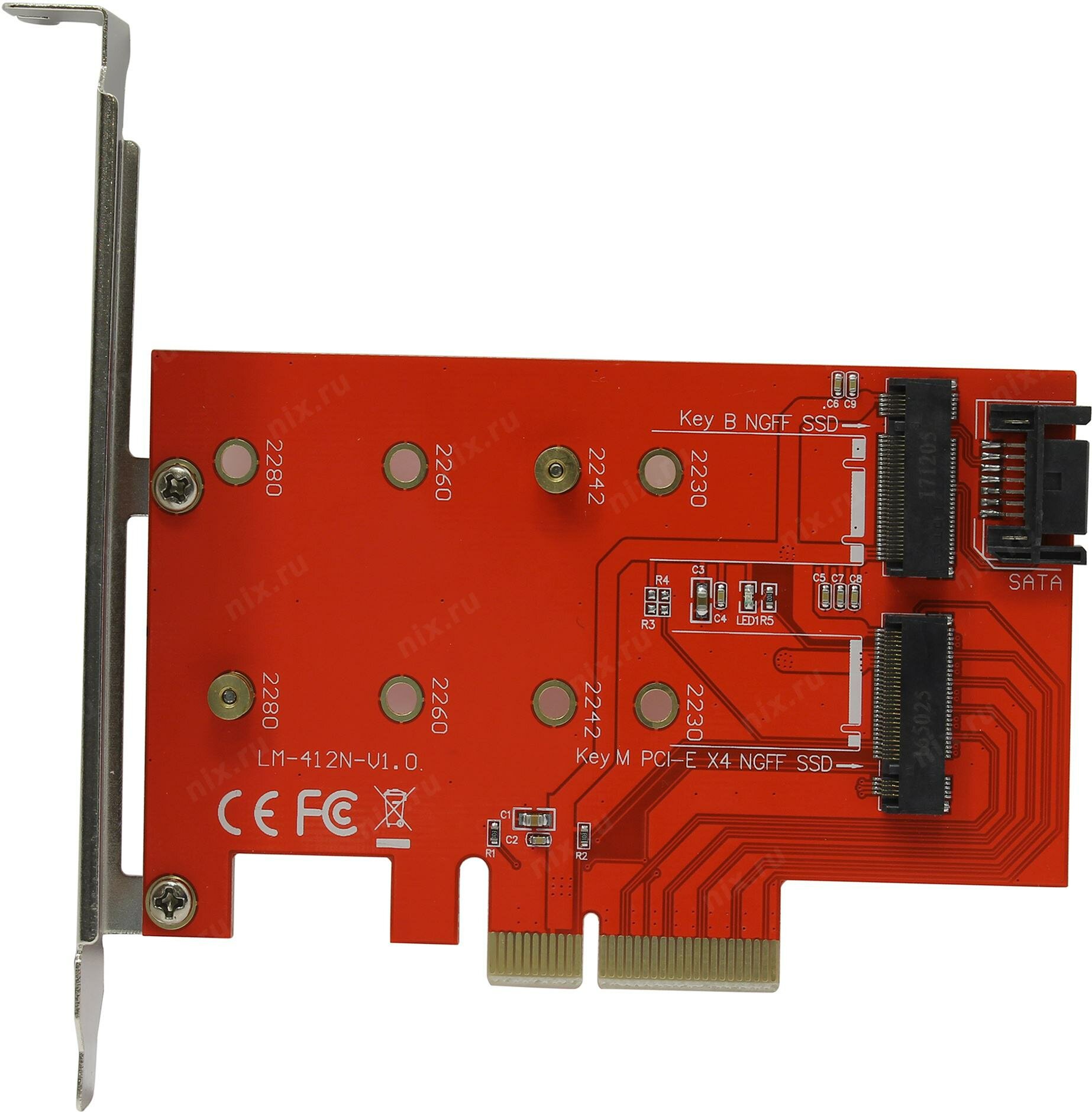 Контроллер PCI-Ex4, M.2 1 порт B key+1 порт M key, модель PCIe2NGFF, Espada интересное: