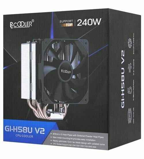 Купить Система охлаждения PCCooler GI-H58U V2 Cooler for S1200/20xx/115x/13xx/AMD, 800-1800rpm, 240W
