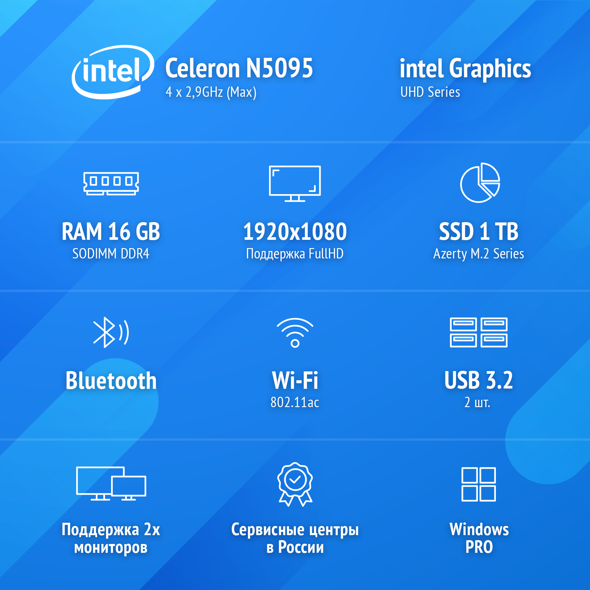 Ноутбук Azerty RB-1551 (15.6" IPS 1920x1080, Intel N5095 4x2.0GHz, 16Gb DDR4, 1Tb SSD) интересное: