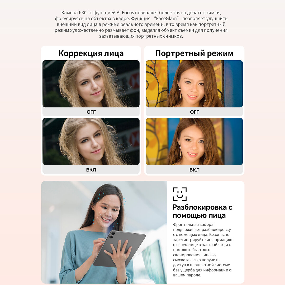 | Особенности | cканер отпечатка пальца / гироскоп / датчик освещенности / детский планшет |