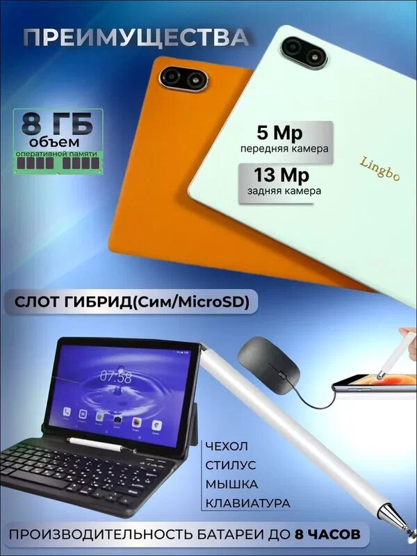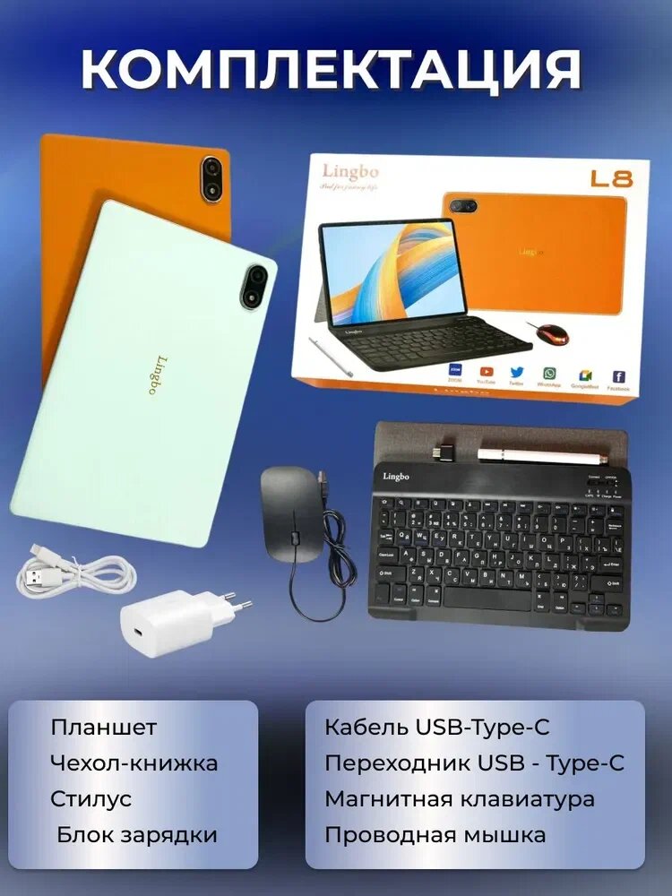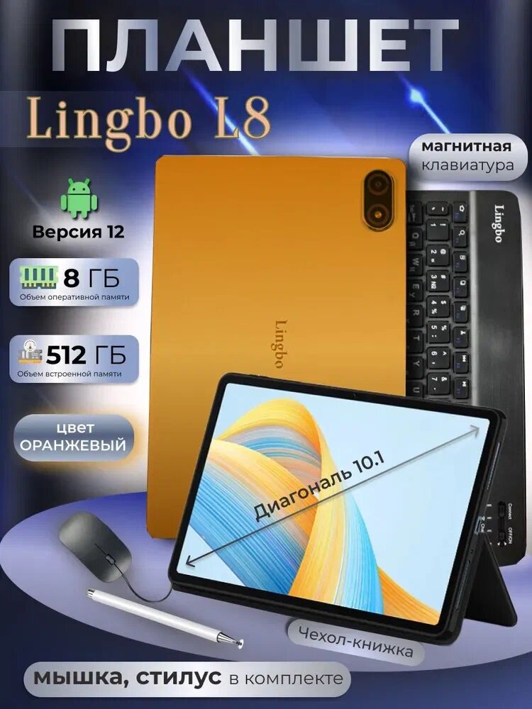 Планшет Lingbo L8 8/512 GB 10.1 дюймов Android 12, Оранжевый интересное: