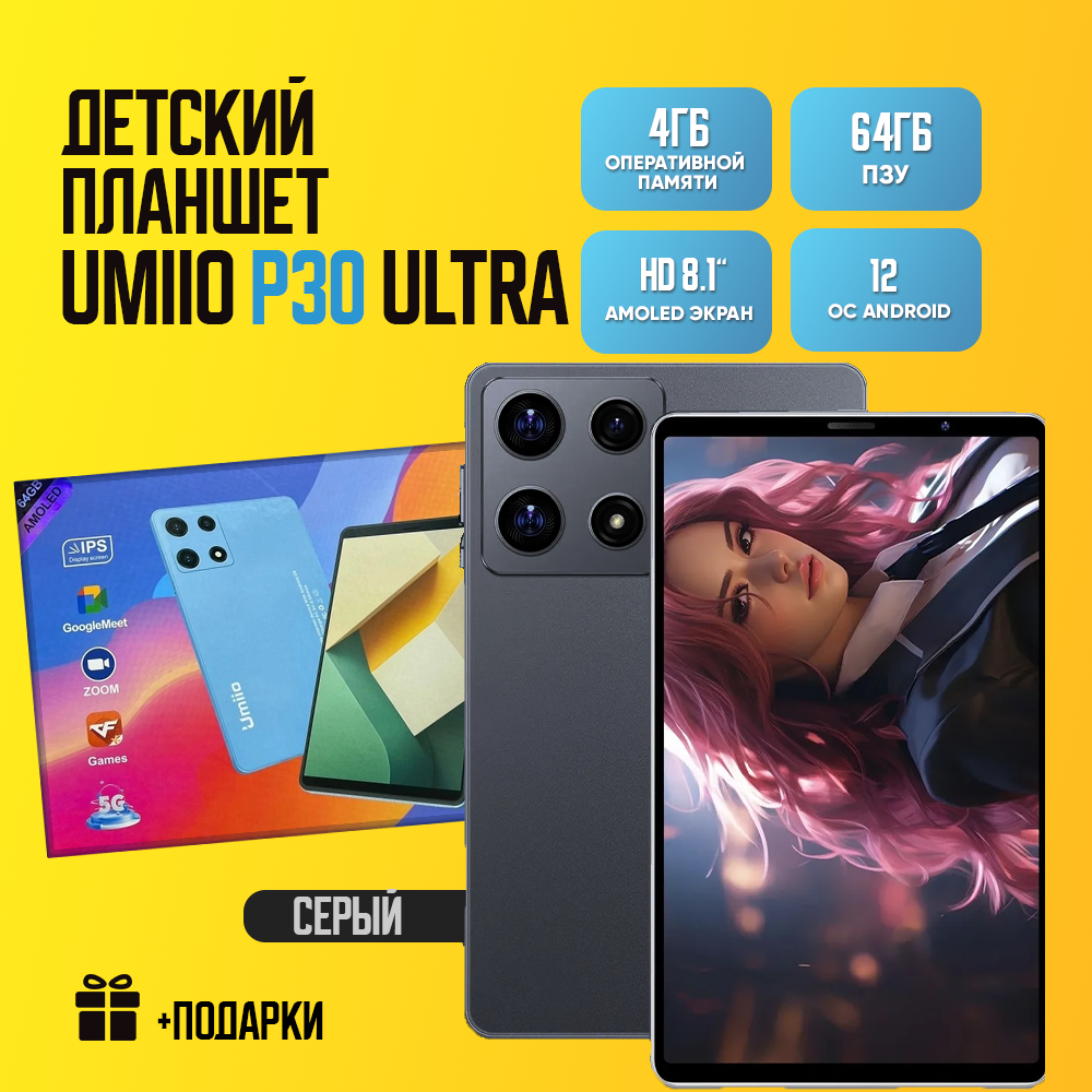 Детский планшет Umiio P30 Ultra 4/64, 8.1", Android 12, 1 sim, Серый интересное: