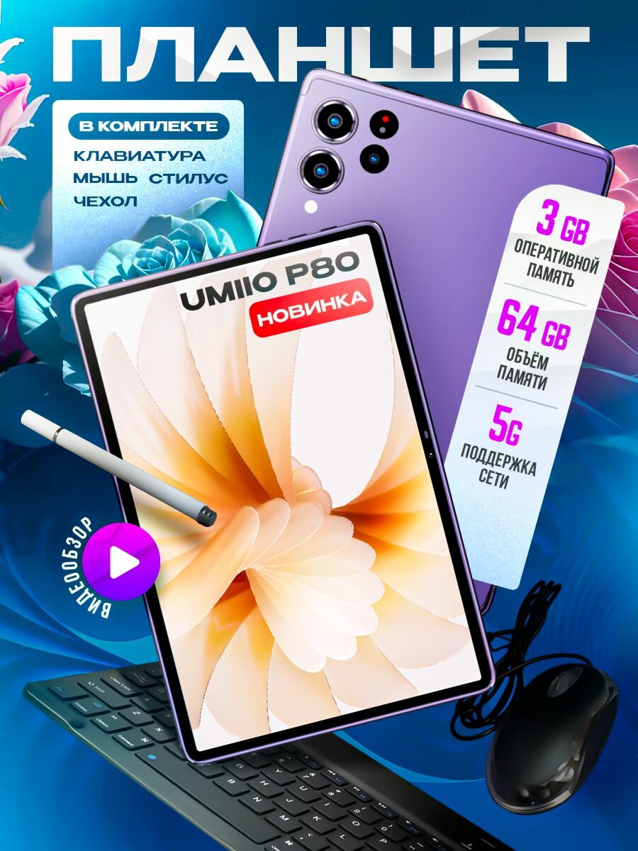 Планшет андроид Umiio P80 Pad 64 ГБ с клавиатурой игровой, фиолетовый интересное: