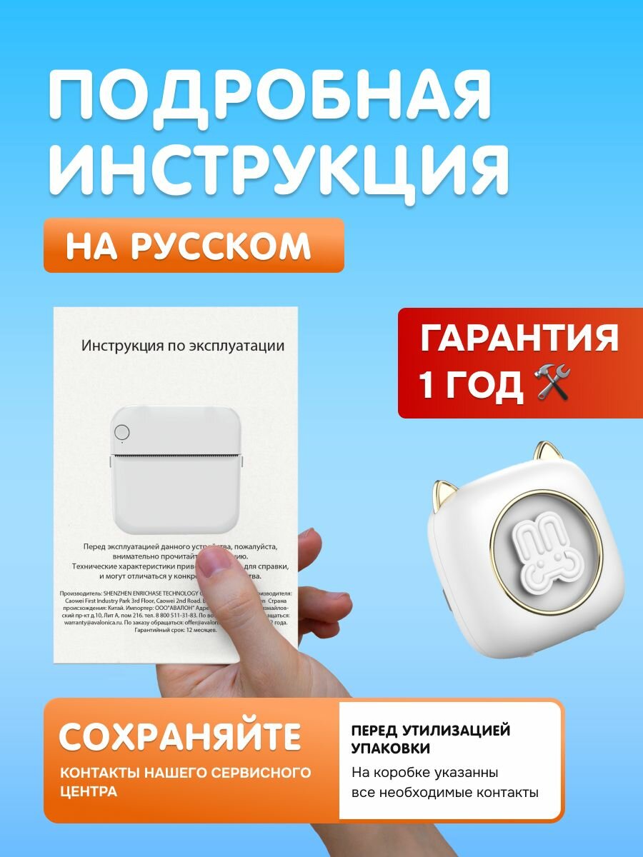 Детский мини-принтер для фотографий Kid Joy, 200DPI, Bluetooth 5.1, поддержка приложения (C23) Blue интересное: