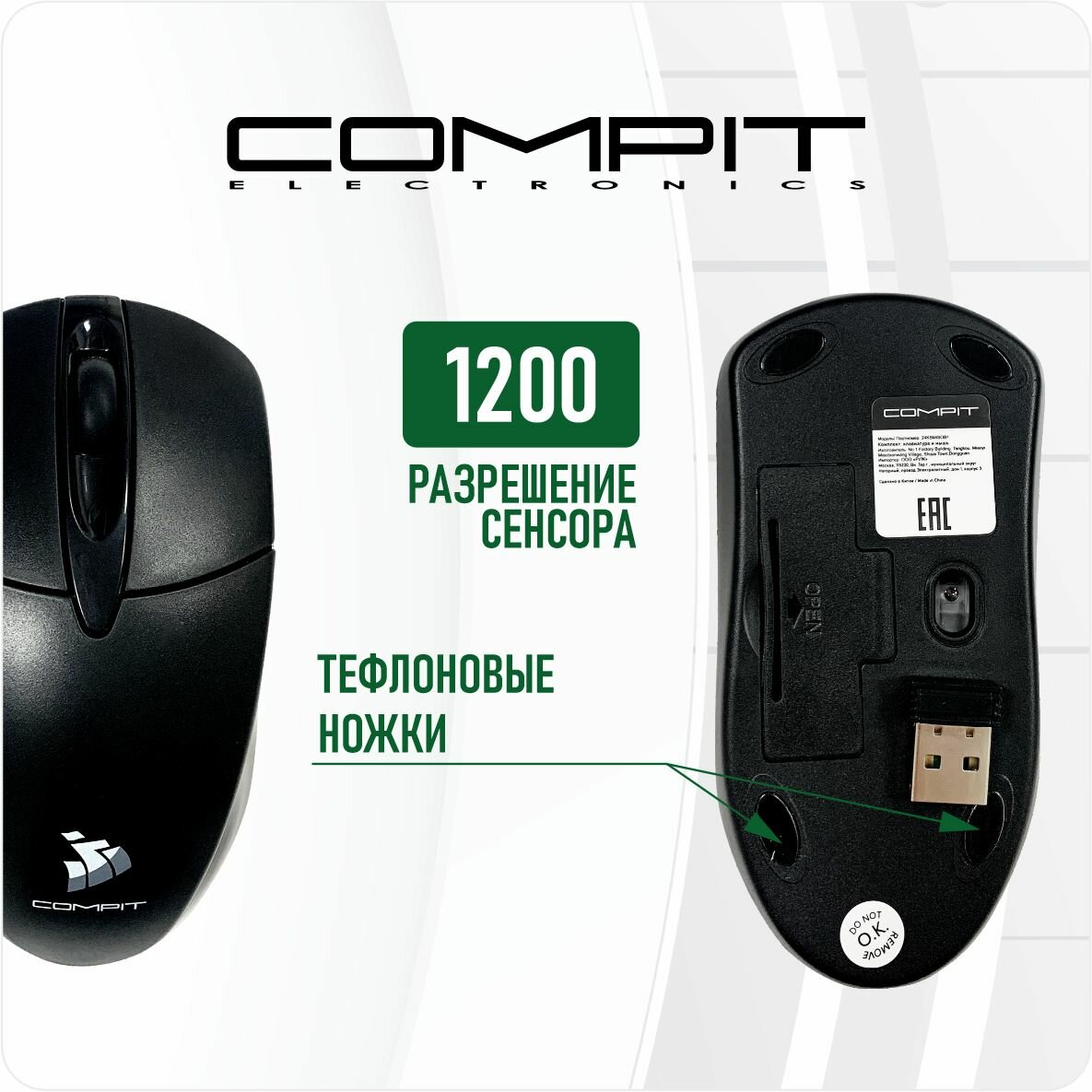 Купить Комплект мышь и клавиатура беспроводная COMPIT 24KBMISOB1, черный