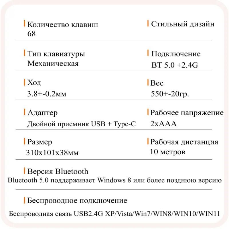 | Интерфейс подключения | Bluetooth / радиоканал |