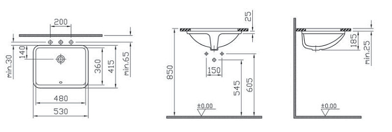 Встраиваемая снизу раковина Vitra S50 48х36см, арт. 5339B003-0012, санфарфор, с отв. под смеситель