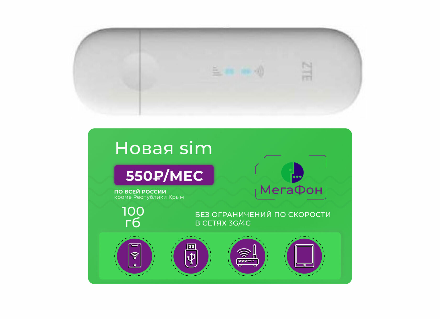 3G/4G WiFi USB модем ZTE MF79RU с сим-картой Мегафон 100 Гб за 550 руб/мес интересное: