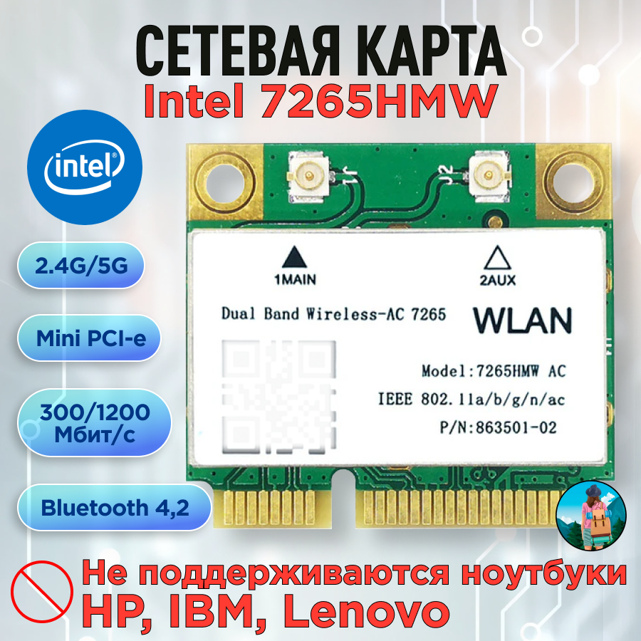 Ниже Вы можете прочитать отзывы на Двухдиапазонная сетевая карта Intel 7265HMW 1200M 4,2 Bluetooth mini PCI-E AC 5G, ознакомится с подробными характеристиками, посмотреть интересные обзоры и фотографии на Двухдиапазонная сетевая карта Intel 7265HMW 1200M 4,2 Bluetooth mini PCI-E AC 5G.
