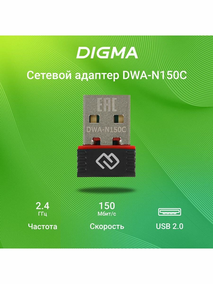 Сетевой адаптер WiFi Digma USB 2.0 dwa-n150c