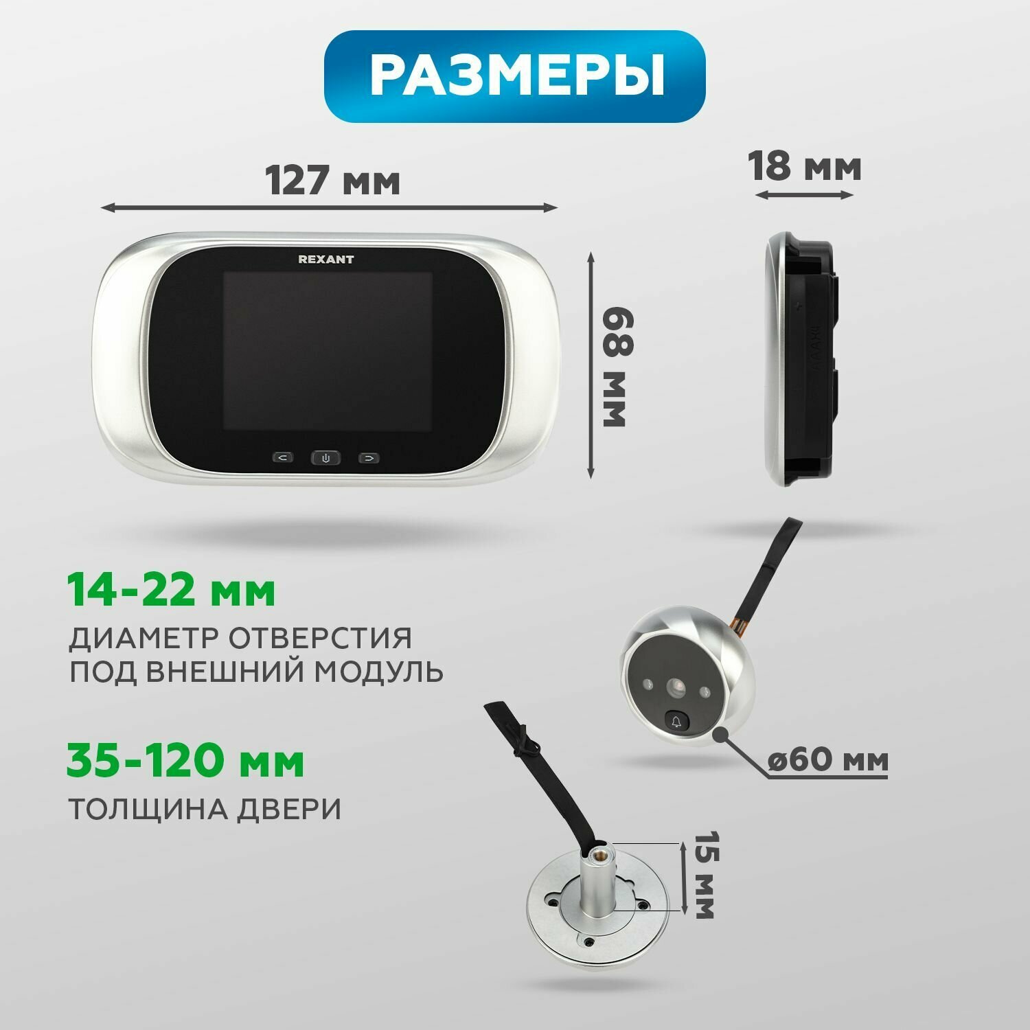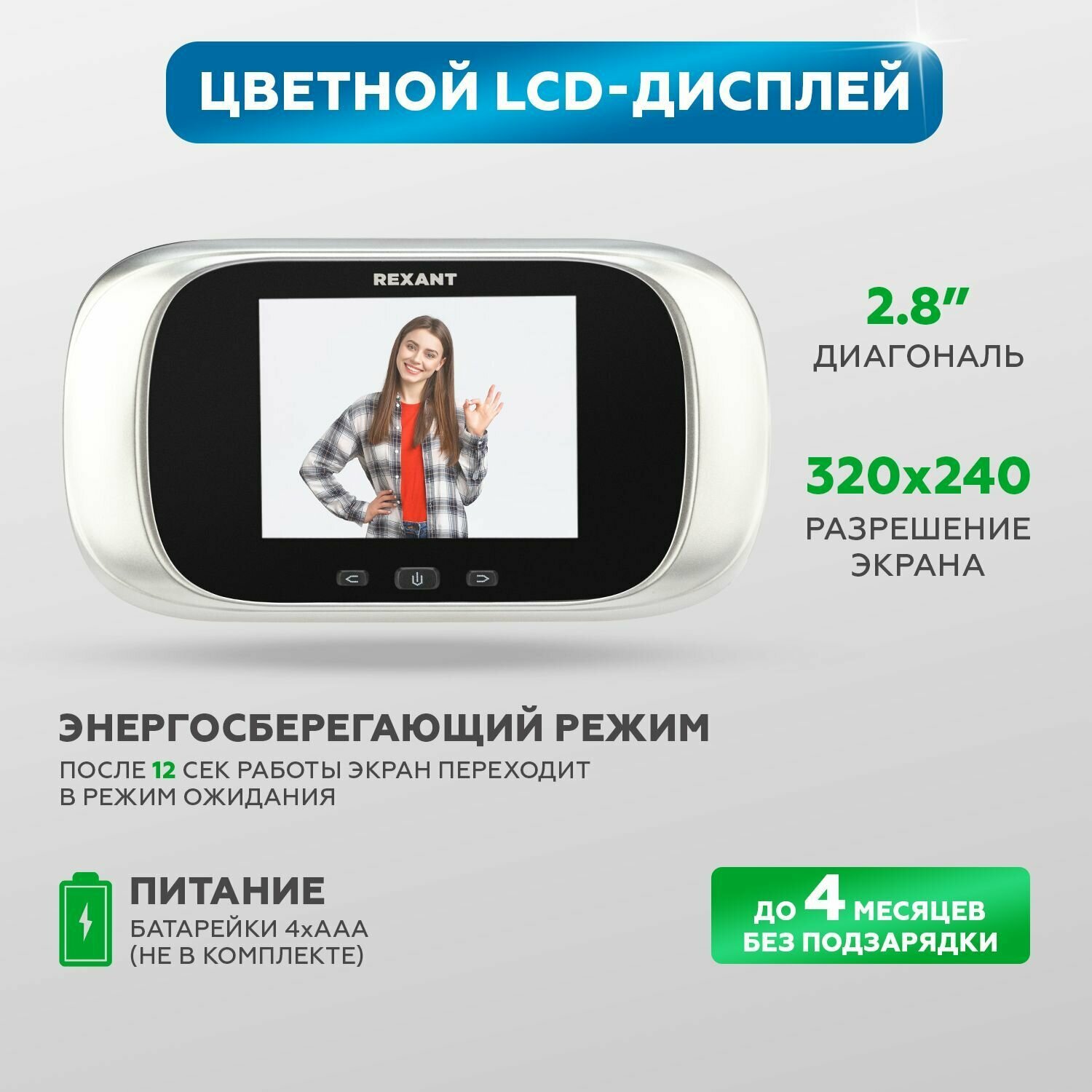 Видеоглазок дверной REXANT с цветным LCD-дисплеем 2.8" с записью фото и звонком