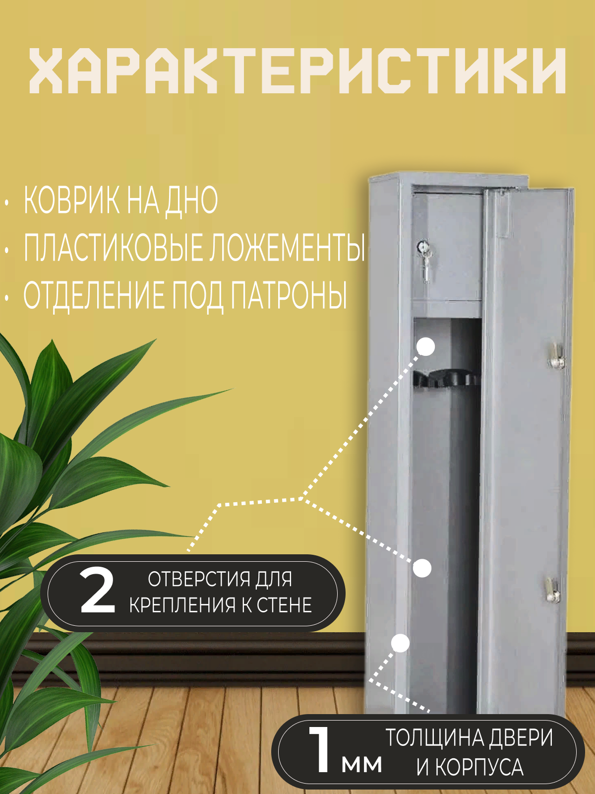 Шкаф оружейный ОШН-1, 220*250*1242, вес 14 кг, 2 ствола, максимальная высота ствола 120 см, меткон интересное: