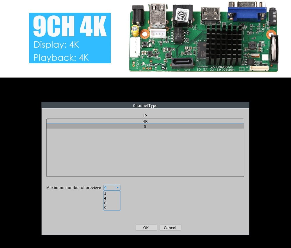 Видеорегистратор IP XmEye H.265 Max 4K 9 каналов, H.265, распознавание лица интересное: