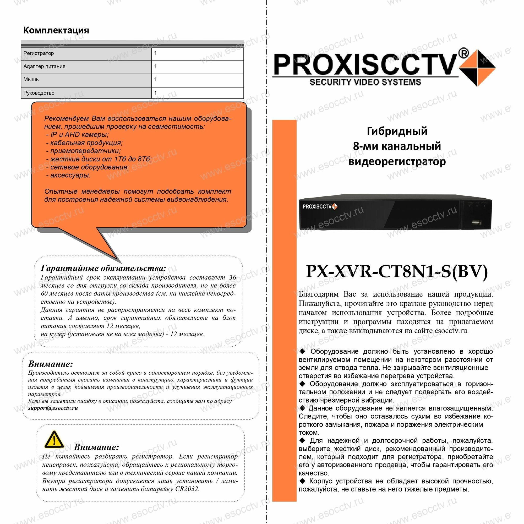 Видеорегистратор гибридный 8 канальный для камер видеонаблюдения, комплект с мышью, 5Мп, 1HDD, H.265. Proxiscctv: PX-XVR-CT8N1-S(BV) интересное: