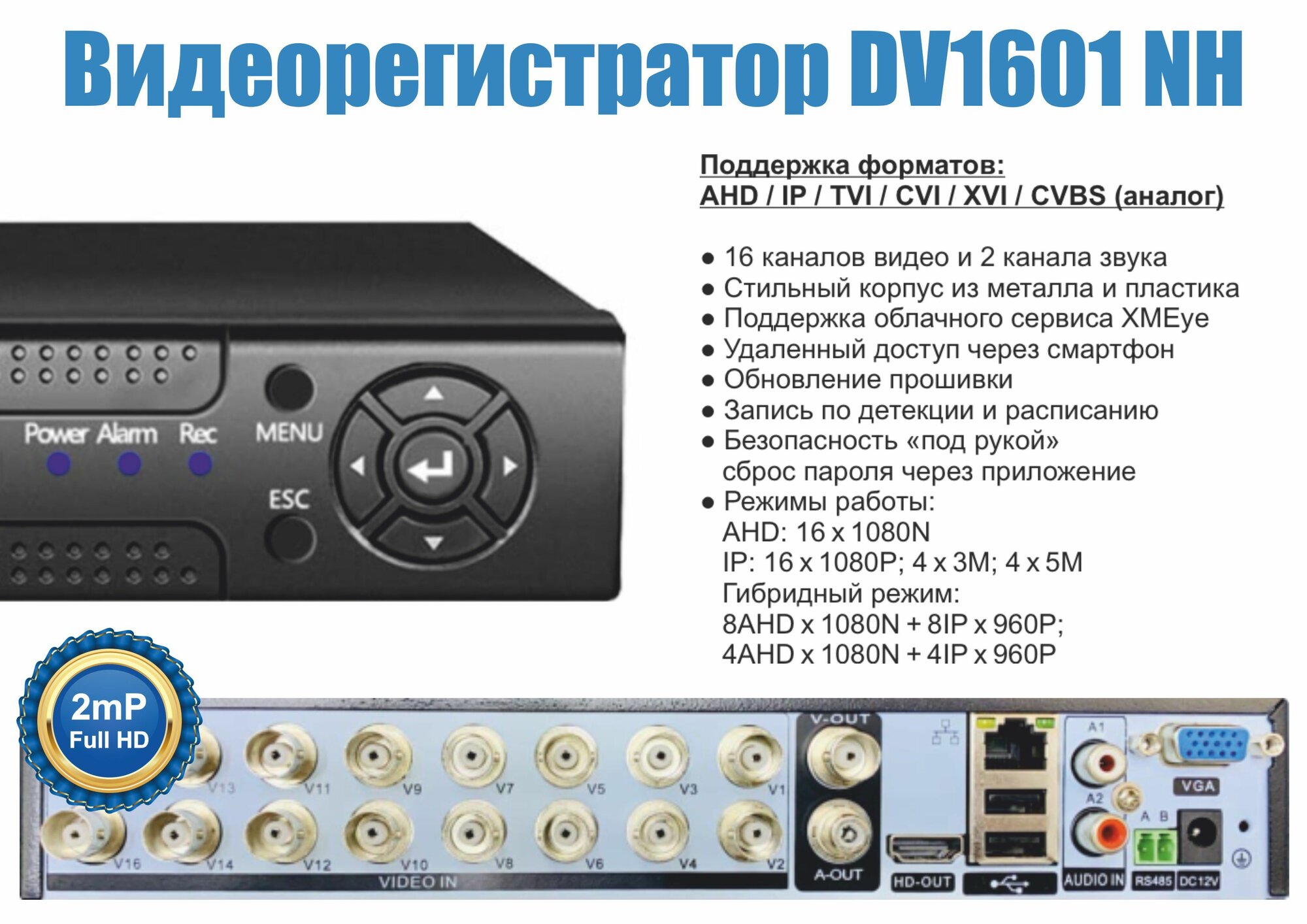 DV1601. Видеорегистратор видеонаблюдения на 16 камер до 2мП (HDD1Tb) интересное:
