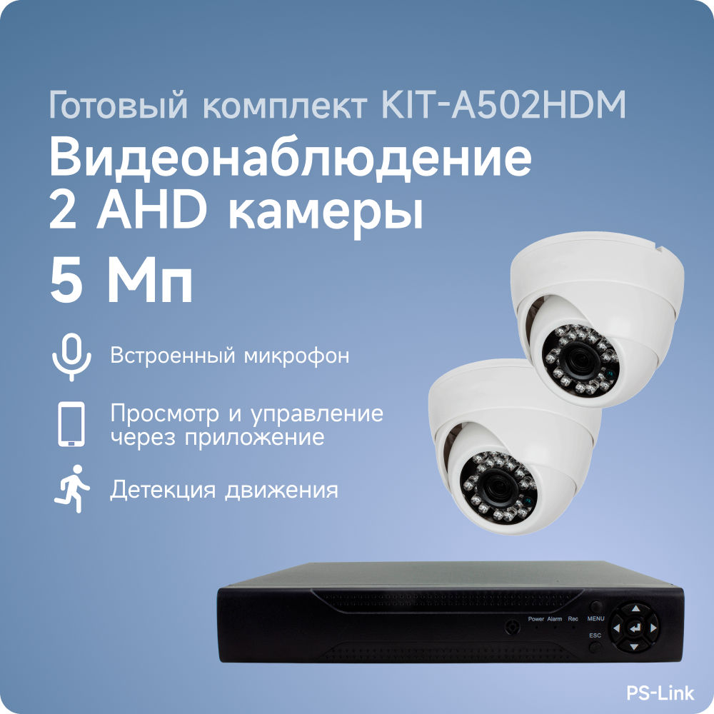 Купить Комплект видеонаблюдения AHD PS-link A502HDM 2 камеры 5Мп для помещения со встроенным микрофоном