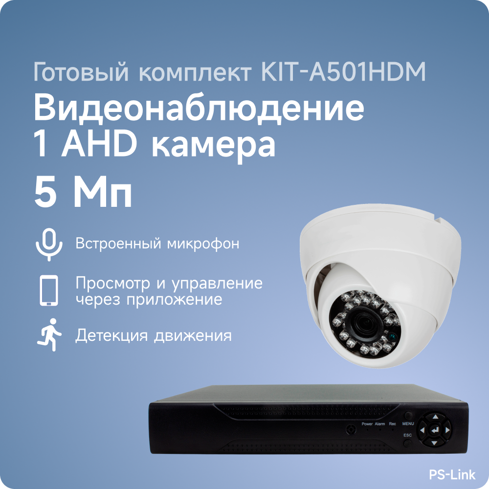 Купить Комплект видеонаблюдения AHD PS-link A501HDM 1 камера 5Мп для помещения со встроенным микрофоном