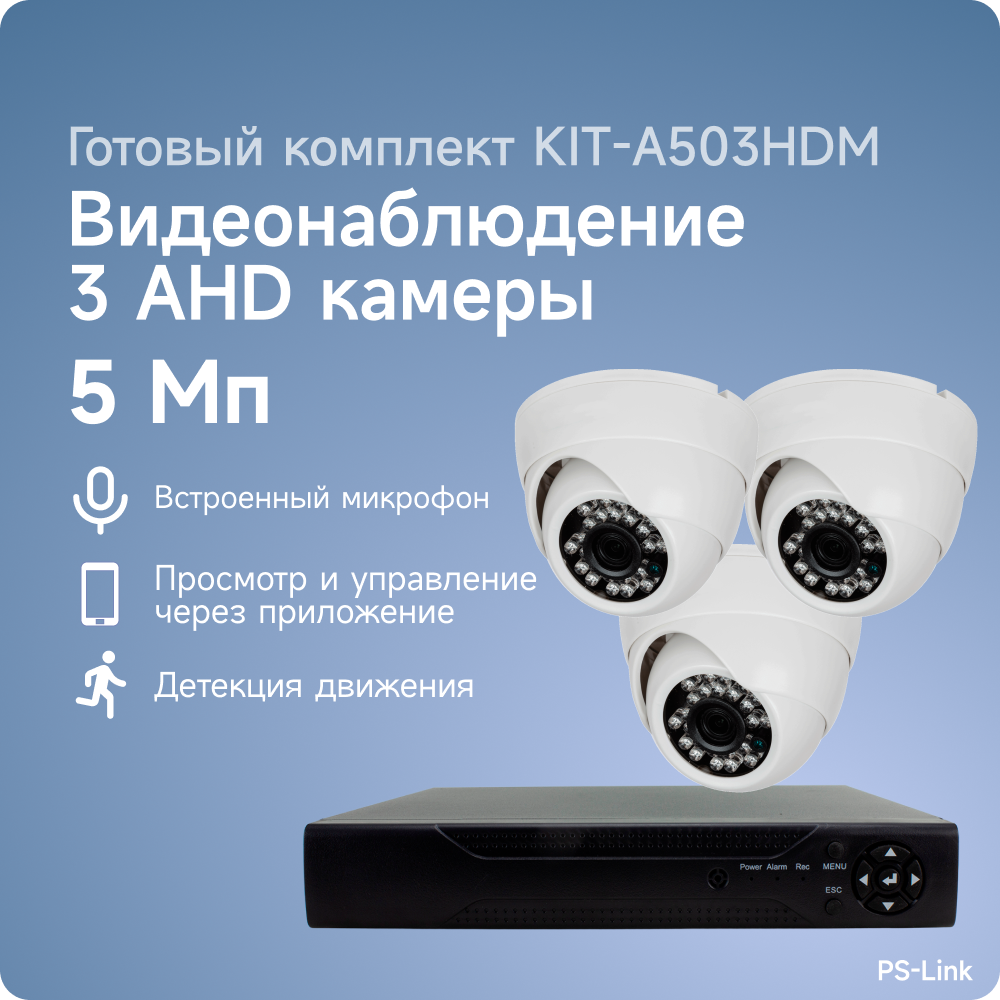 Купить Комплект видеонаблюдения AHD PS-link A503HDM 3 камеры 5Мп для помещения со встроенным микрофоном