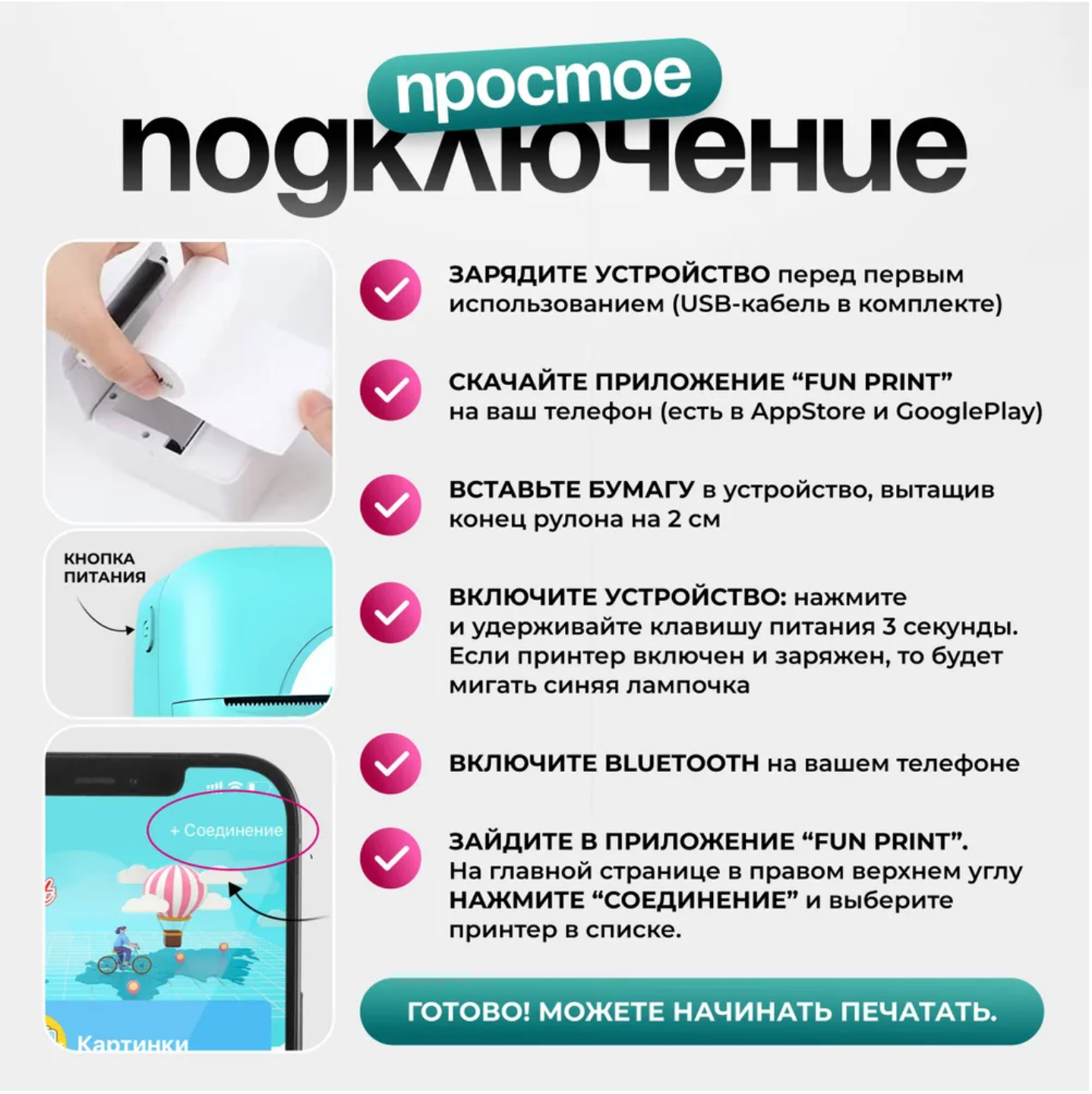 Мини принтер для телефона портативный термопринтер Cloud Six интересное: