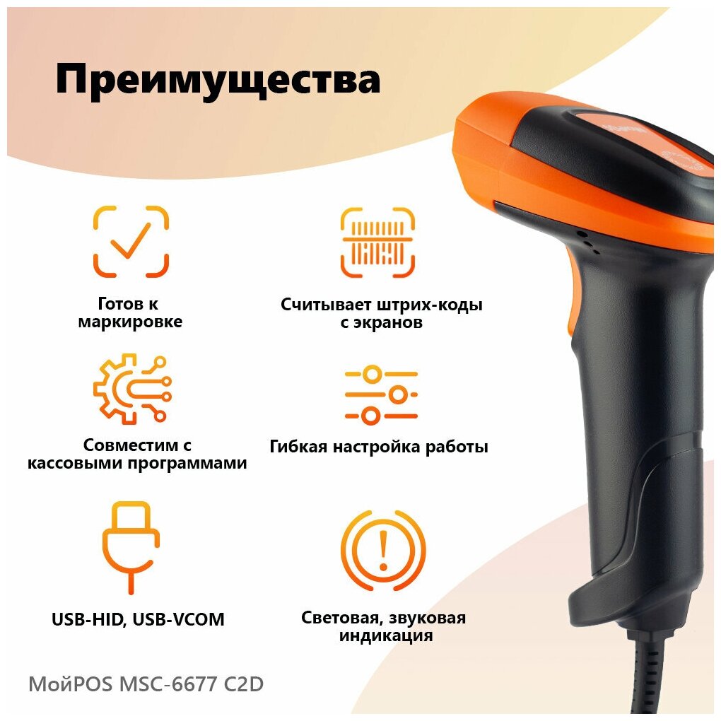 Сканер штрих-кода проводной МойPOS MSC-6677C 2D для маркировки и ЕГАИС USB интересное: