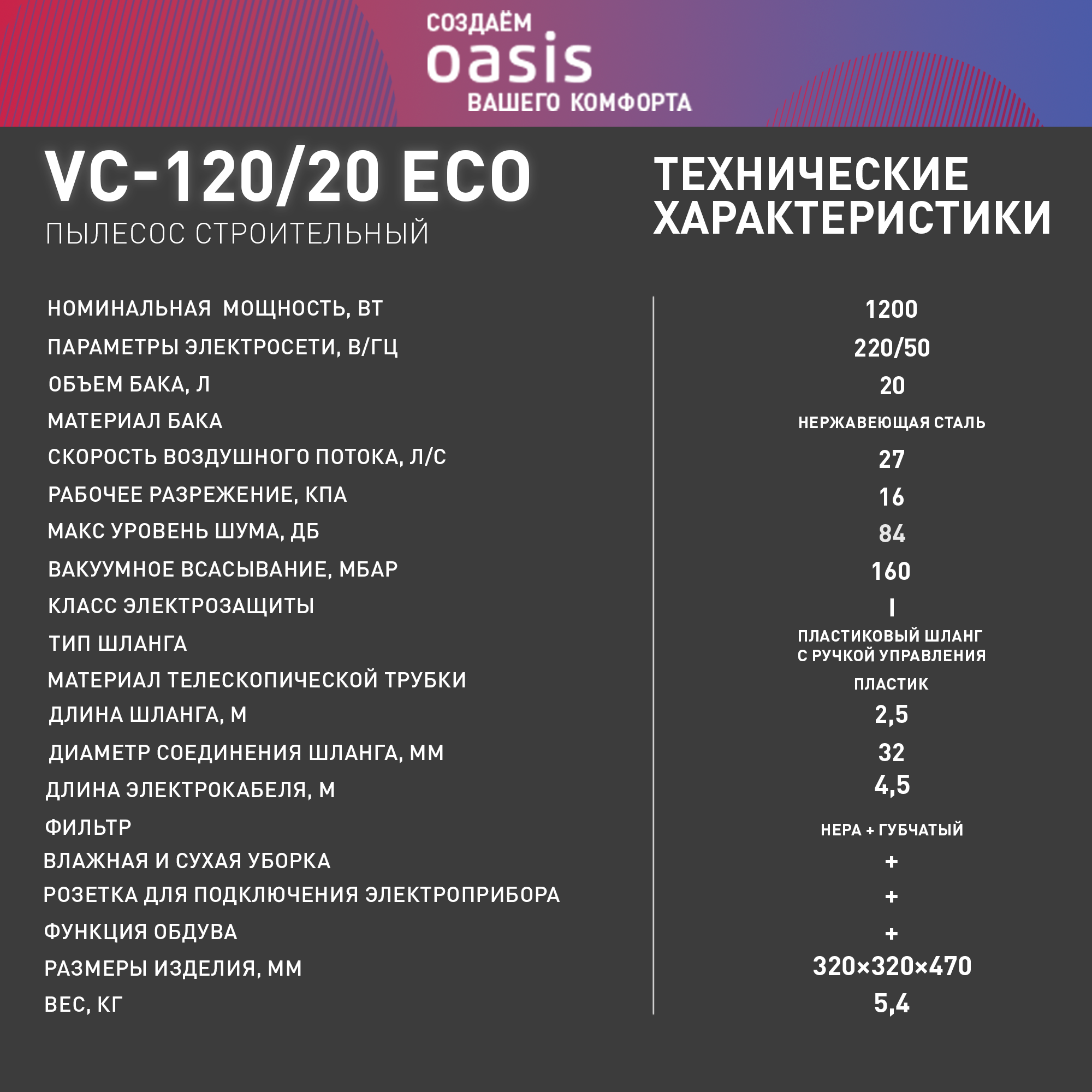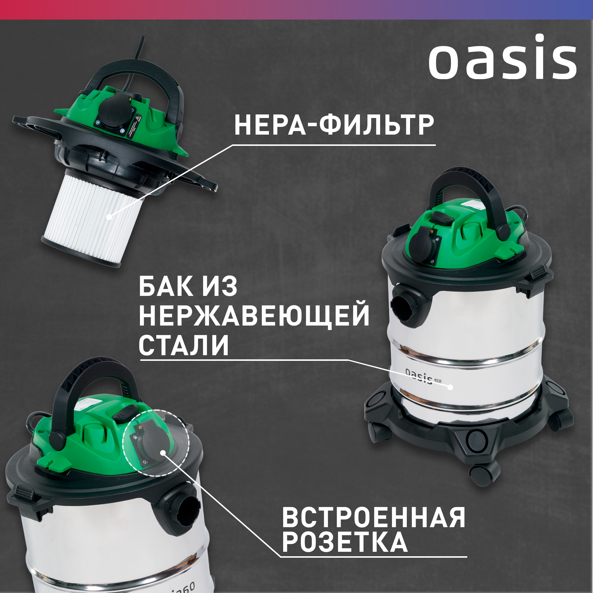 Строительный пылесос с розеткой промышленный 20 л Oasis VC-120/20 ECO интересное: