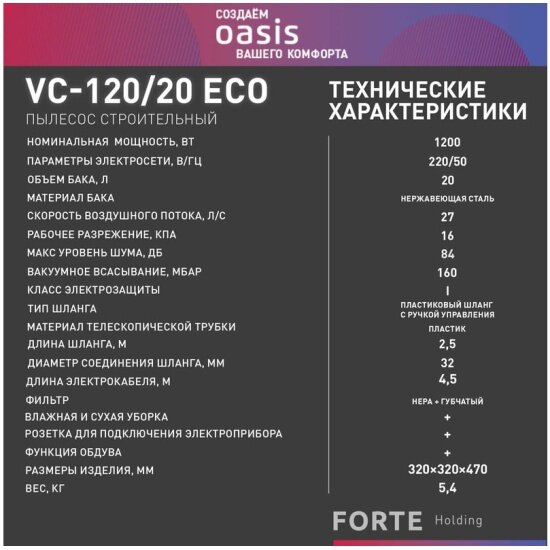 Ниже Вы можете прочитать отзывы на Строительный пылесос с розеткой промышленный 20 л Oasis VC-120/20 ECO, ознакомится с подробными характеристиками, посмотреть интересные обзоры и фотографии на Строительный пылесос с розеткой промышленный 20 л Oasis VC-120/20 ECO.