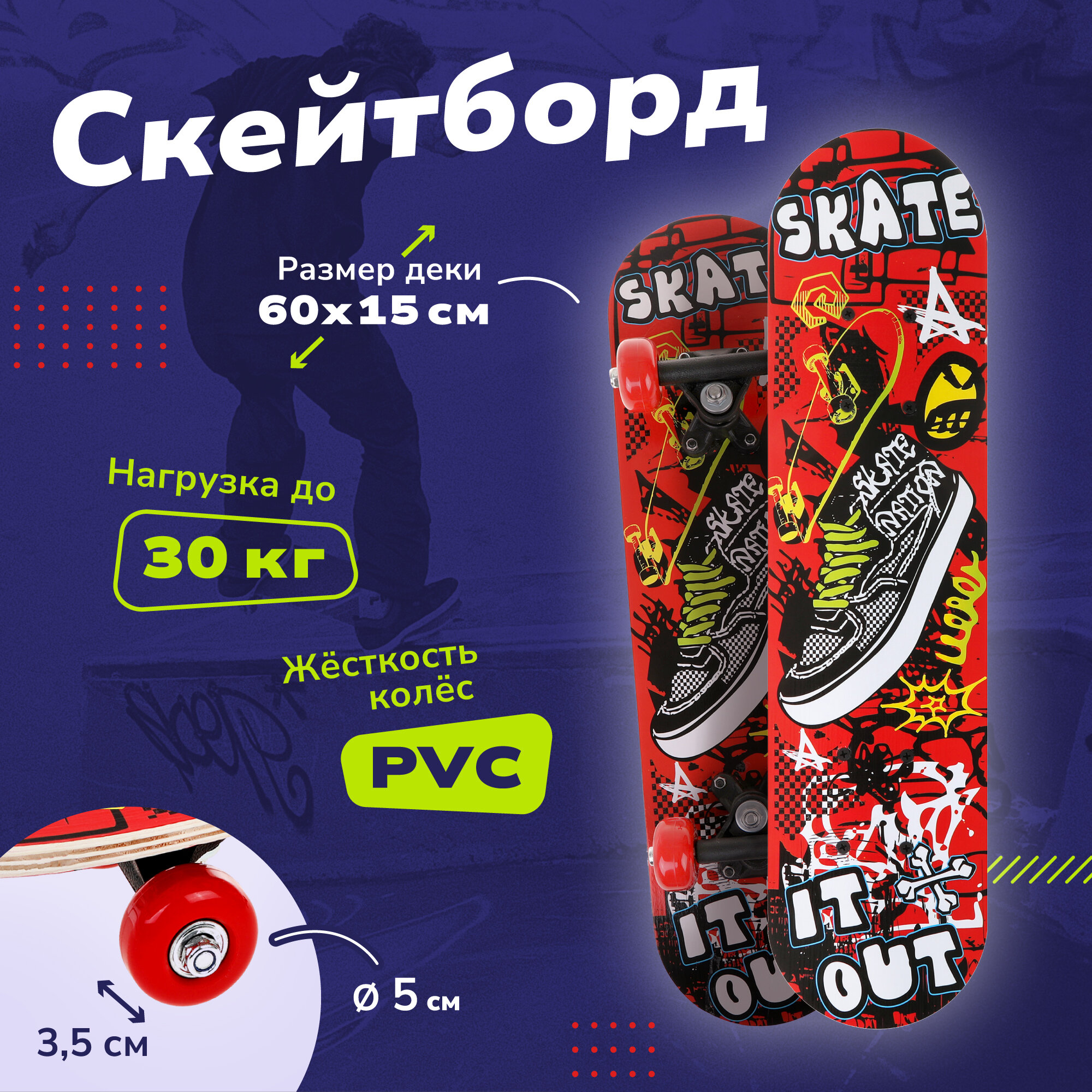 Купить Скейтборд 60см Кеды
