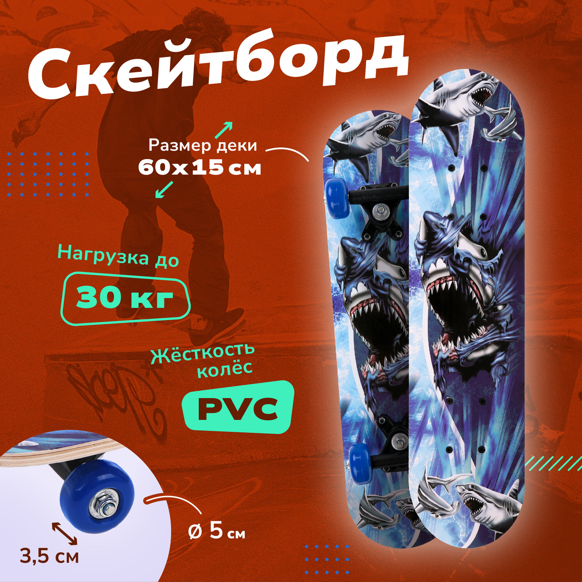 Купить Скейтборд 60см Акула