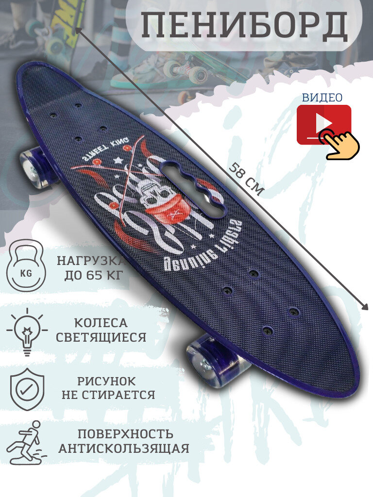 Пениборд для подростков Скейтборд детский Пенниборд со светящимися колесами Скейт борд с ручкой 58 см интересное: