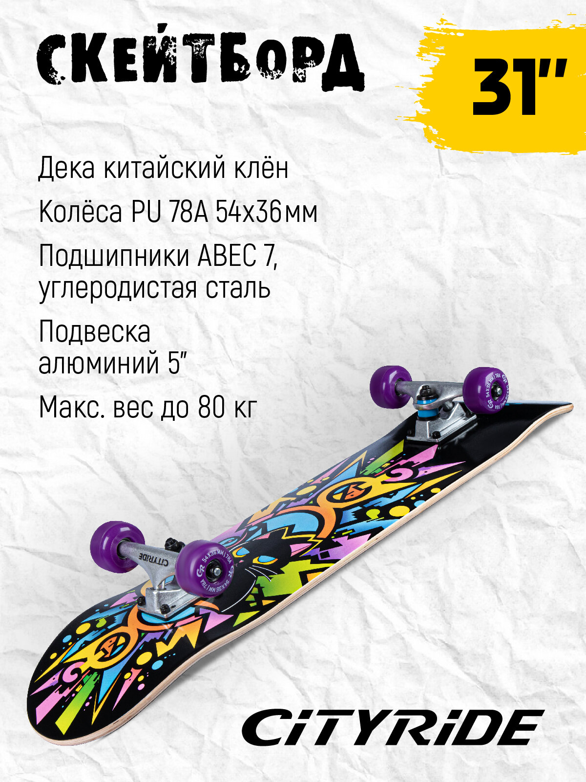Купить Скейтборд ТМ City-Ride, дека клен 9 слоев, размер 31"*8", колеса: 54*36мм, PU, ABEC-7, JB4200182
