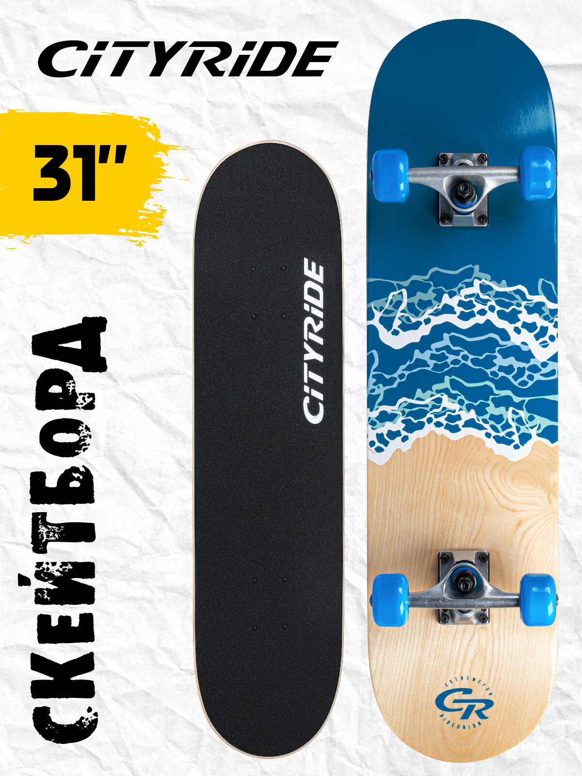 Скейтборд ТМ CITYRIDE, дека клен 9 слоев, размер 31"*8", колеса: 54*36мм, PU, 85А, ABEC-7, JB4200200