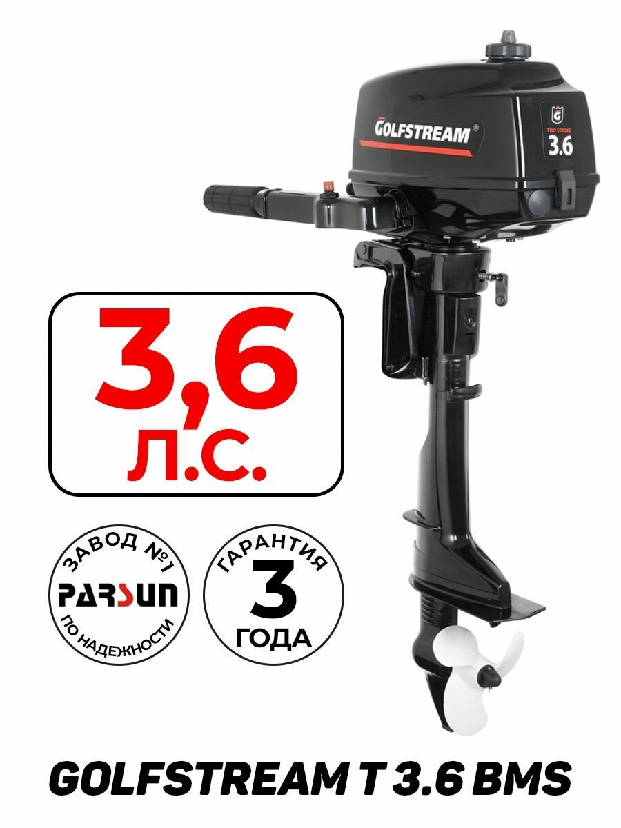 Купить Лодочный мотор GOLFSTREAM T3.6BMS, бензиновый, 3.6 л.с., 75 куб.см, 2 тактный, 2.64 кВт