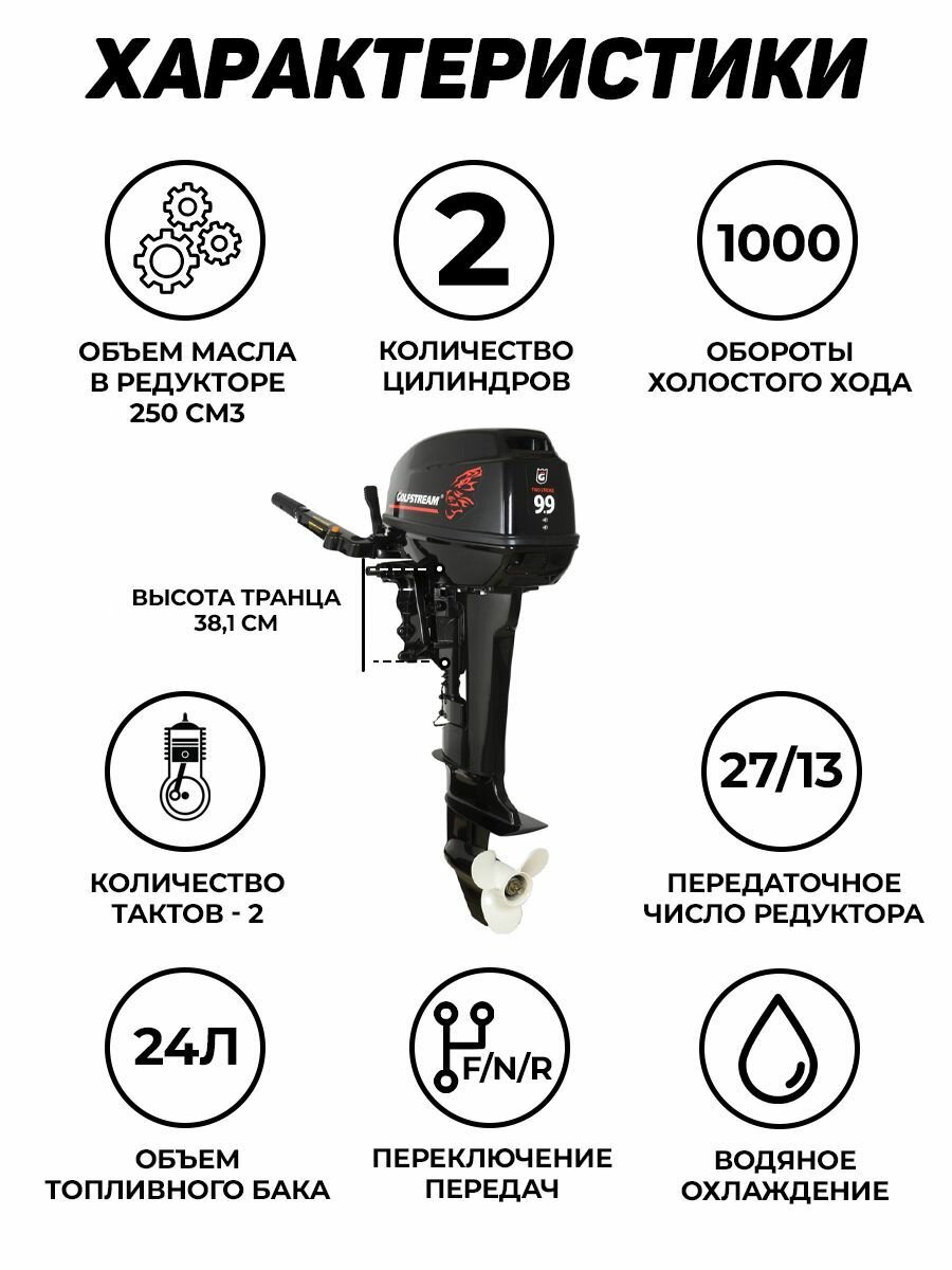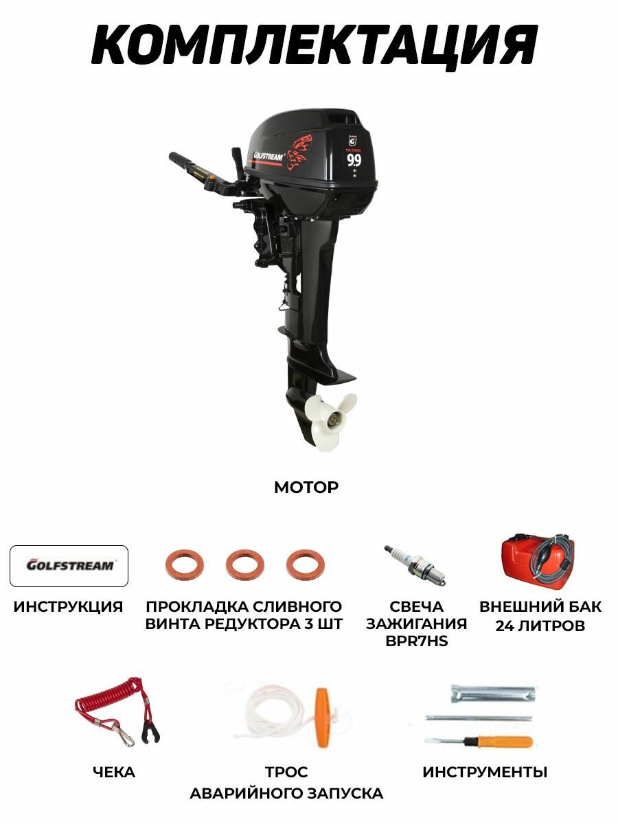Лодочный мотор GOLFSTREAM T9.9BMS, бензиновый, 15 л.с., 246 куб.см, 2 тактный, 7,3 кВт интересное: