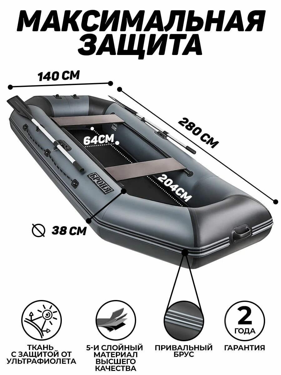 Лодка ПВХ моторно-гребная Броня 280 М, серый;черный интересное: