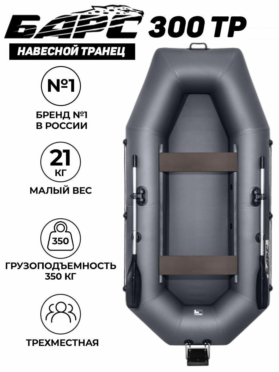 Лодка пвх моторно-гребная Барс 300, трёхместная, графит, навесной транец в комплекте