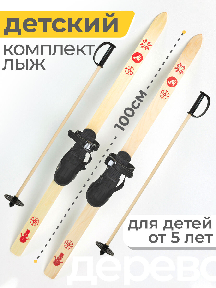 Купить Лыжи детские 100 см Маяк с палками и креплениями дерево