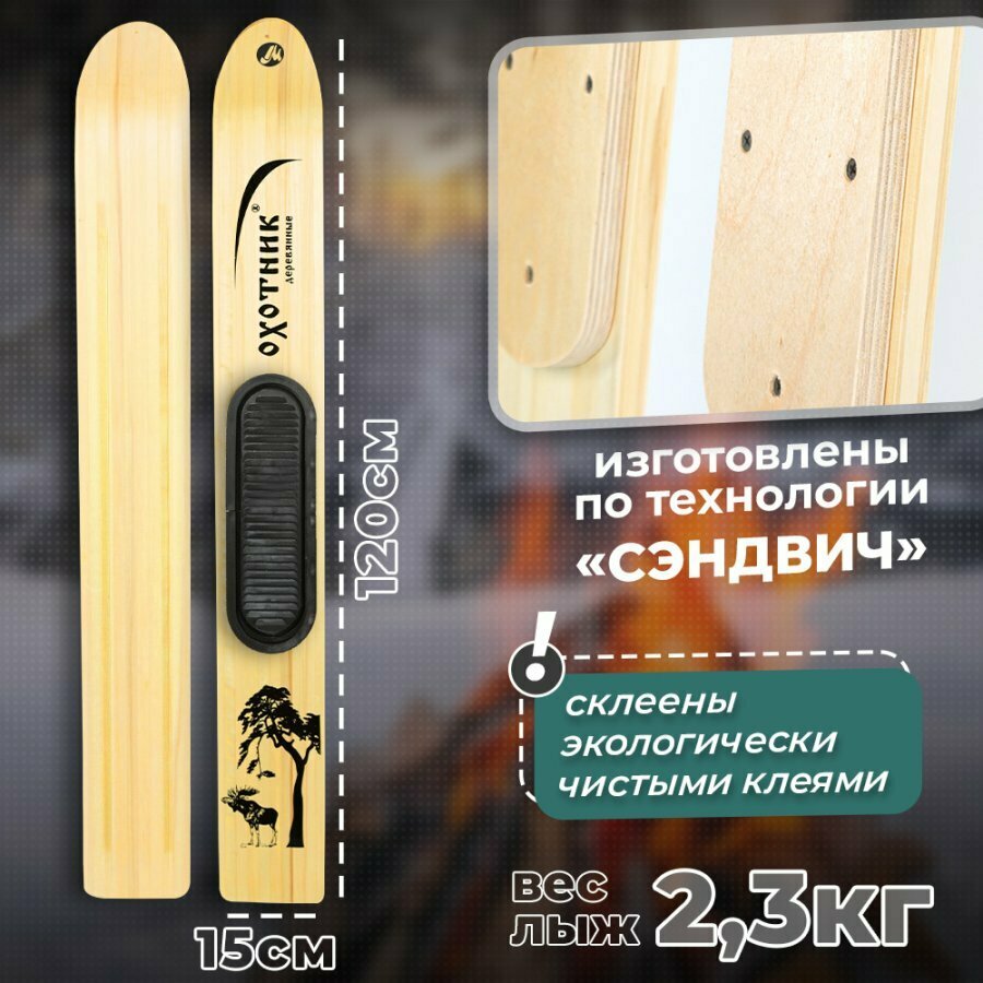 Охотничьи лыжи Маяк охотник 120х15 см, дерево с пластиковой накладкой и амортизатором