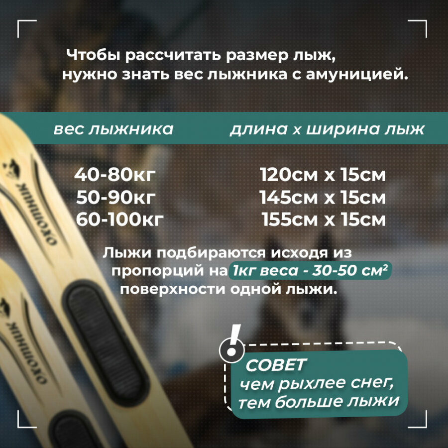 | Дополнительная информация | Промысловые лыжи незаменимы для зимней охоты и подледной рыбалки |