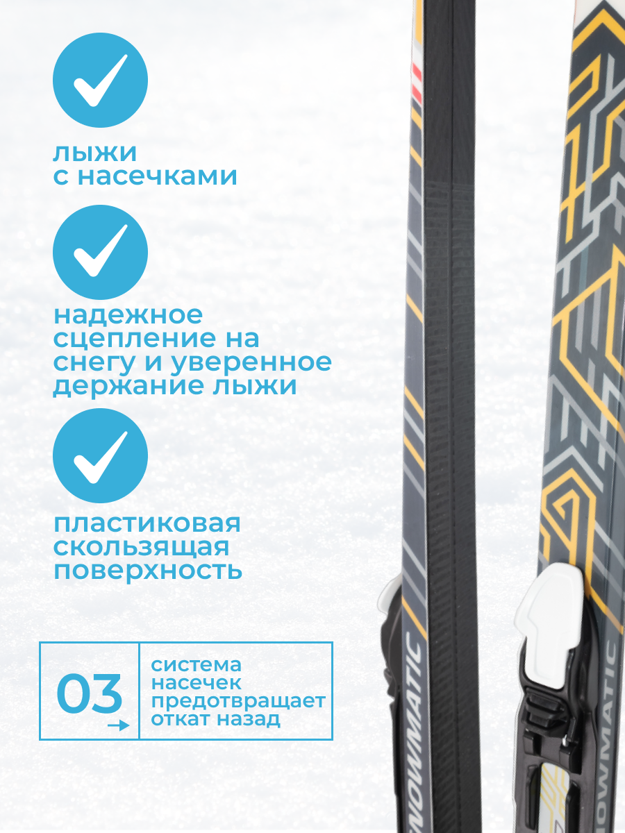 Лыжи беговые 150 см комплект Snowmatic Step с креплением NNN интересное: