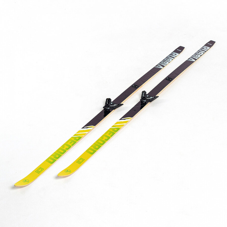 Купить Лыжи беговые Маяк 160 см деревянные с креплением NN75, желто-черно-зеленые