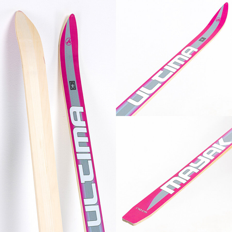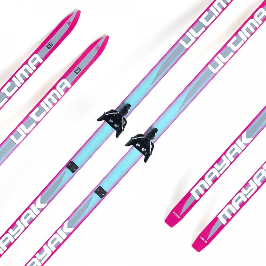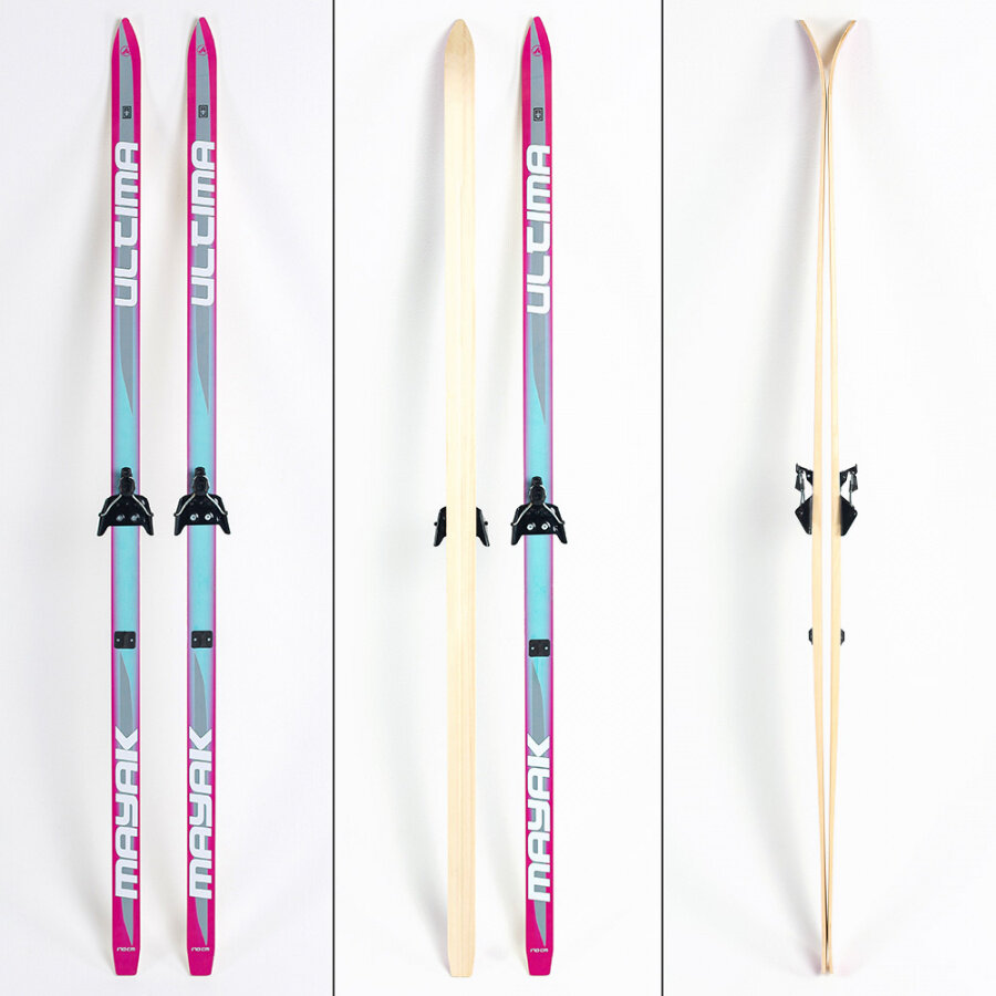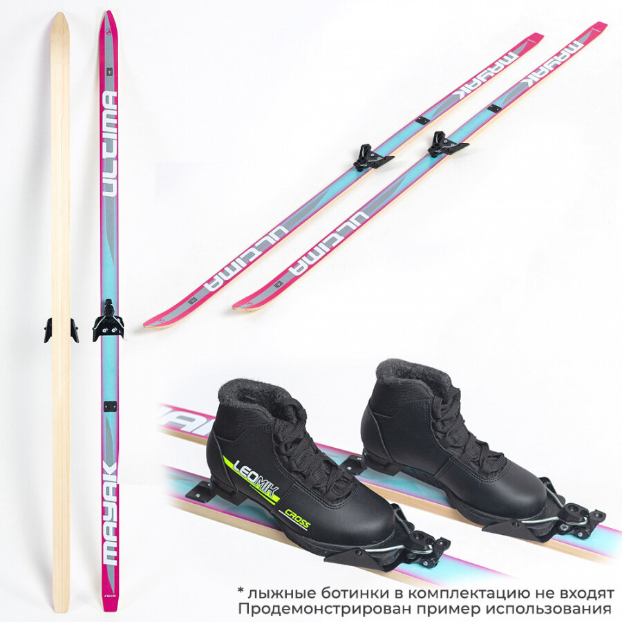 СохранитьЛыжи беговые Маяк 170 см деревянные с креплением NN75, малиновый-голубой интересное: